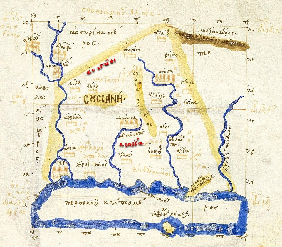 The Elymaei are obviously Elamites, while the Sousii are obviously the Susanites - both an Elamite people group. Interestingly, the name Sousii was sometimes referred to by the name “Cissia” (in red on the map) in certain Greek sources such as Herodotus, which may retain a link to the Kassites of earlier periods - potentially also settled originally in the Zagros mountains. Given the direct link between these two groups and Elam, it is likely the Uxii were a further eastern settled group with a similar culture to the Elamites.12